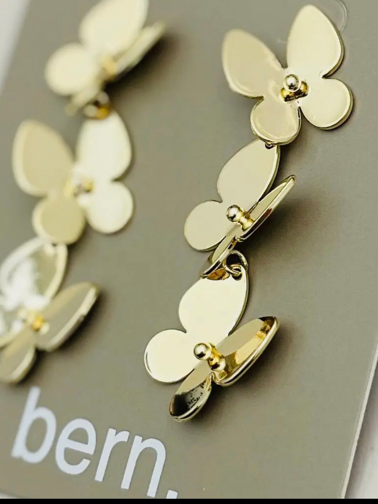 Catch the light with these enchanting butterfly danglers that shimmer in lustrous gold. Each delicate wing flutters with movement, creating a mesmerizing cascade effect that dances with your every step. Perfect for adding a touch of whimsy and sparkle to any outfit, these playful accessories bring a flutter of joy to your day. Let your style take flight!