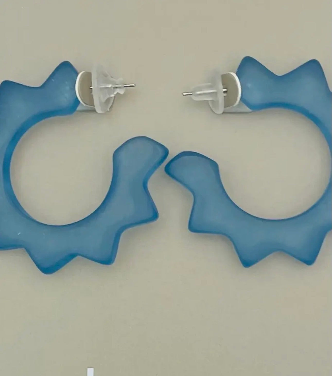 Make a statement with these eye-catching light blue hoops that bring vintage vibes to any outfit. The frosted finish gives them a cool, modern edge while the classic hoop silhouette keeps things timeless. Perfect for adding a pop of color and personality to your everyday look or dressing up for a night out. These playful accessories are the kind of piece that makes you smile every time you catch your reflection.