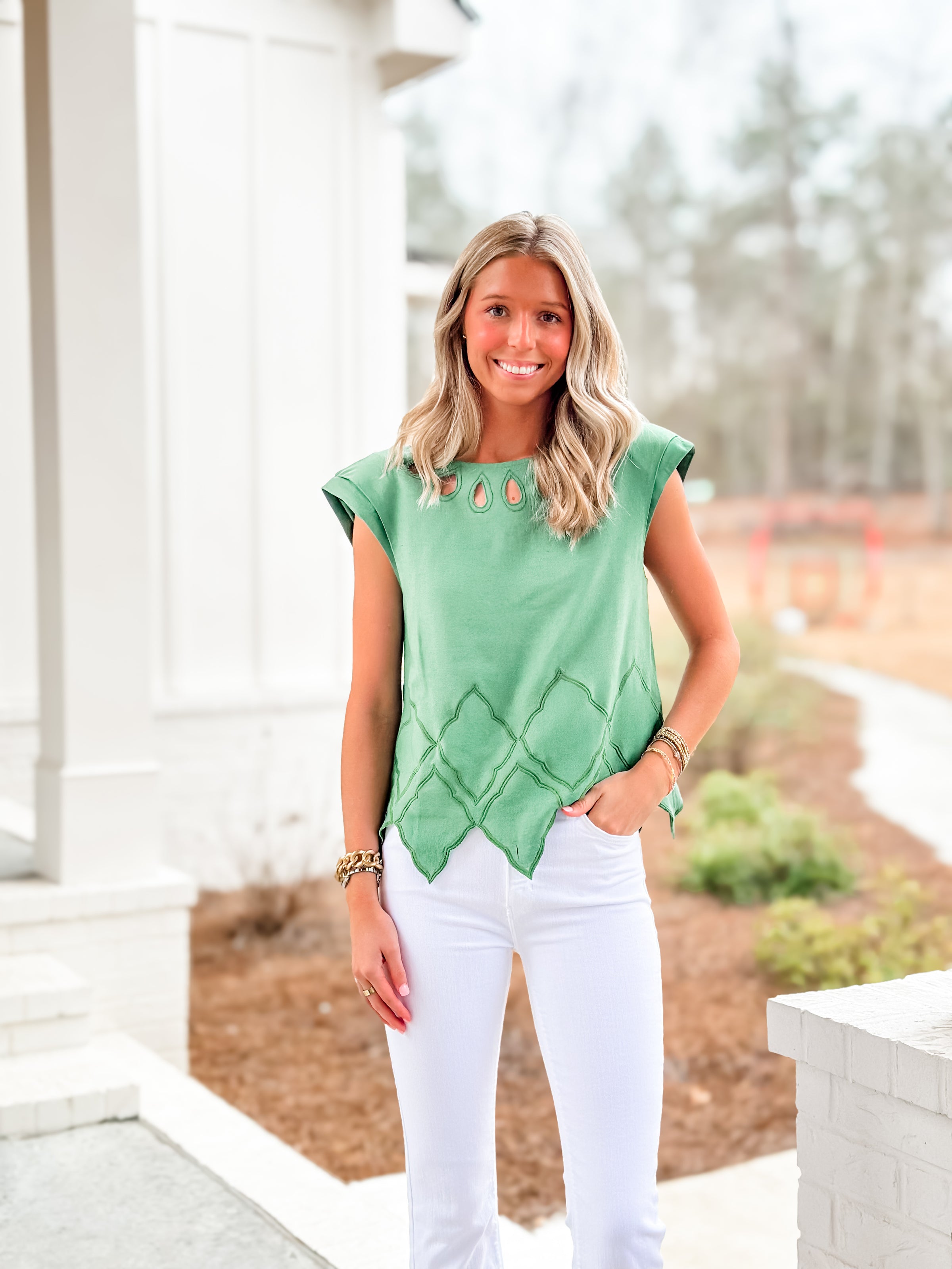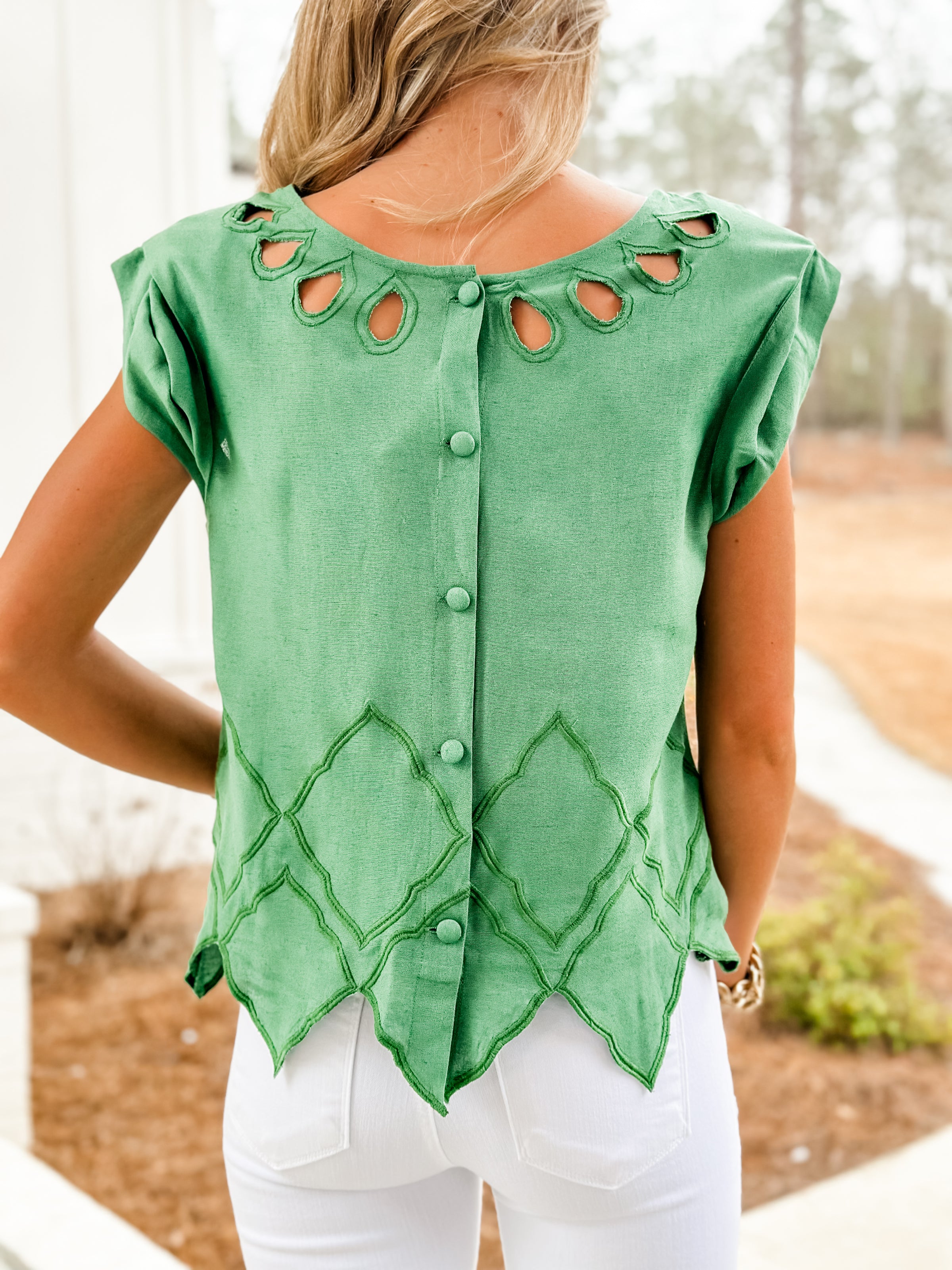 The Hatti Top brings effortless elegance to your wardrobe with its fairway green hue and timeless linen construction. Perfect for those who appreciate quality fabrics and understated sophistication, this classy piece transitions seamlessly from casual brunches to refined evenings out. The breathable linen keeps you cool and comfortable while maintaining that polished, put-together look. Whether you're dressing it up or keeping it relaxed, the Hatti Top is your new go-to for looking naturally chic.