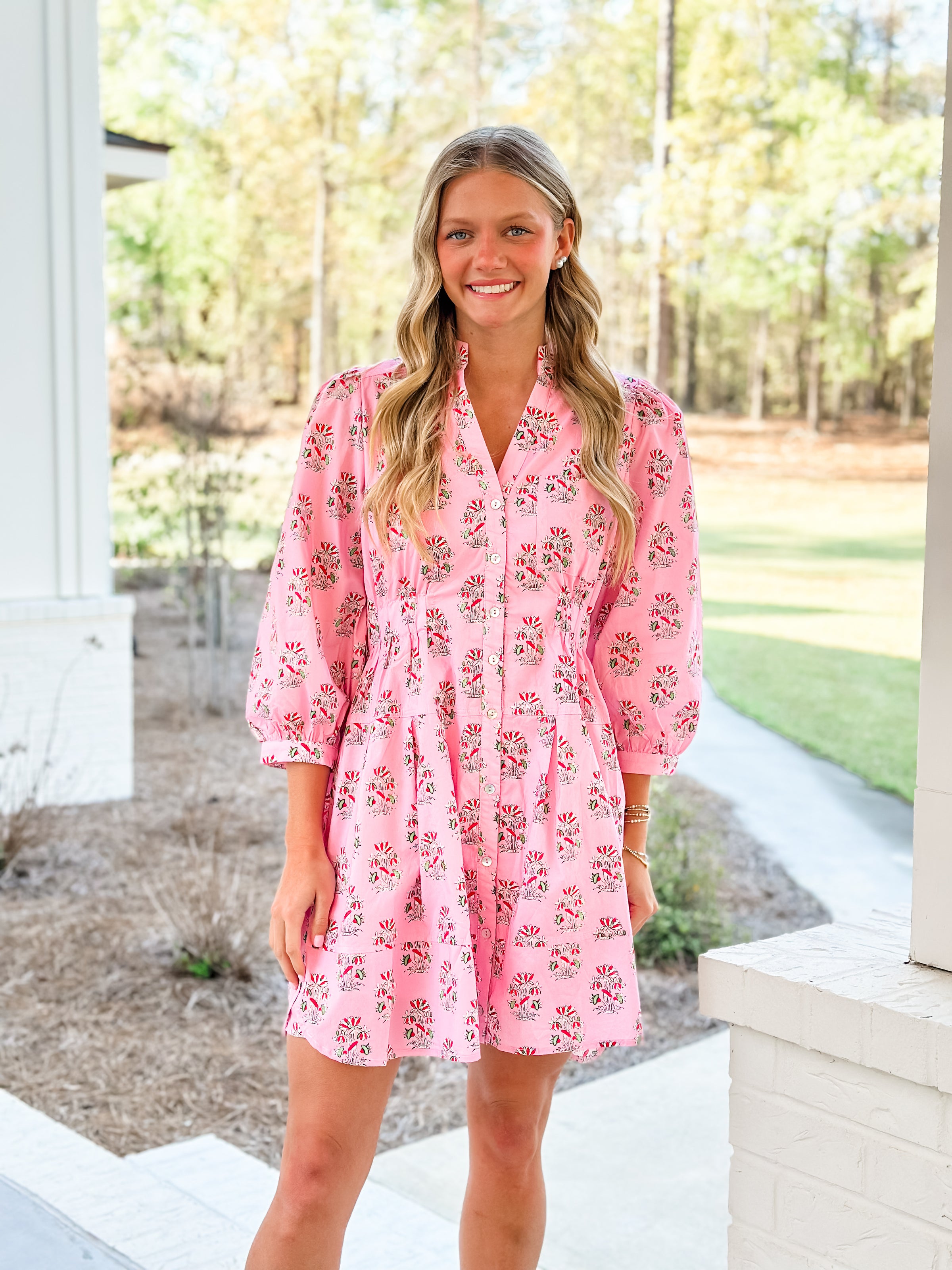 Elevate your everyday elegance with the Blush Drift Dress—a charming mini that effortlessly transitions from casual brunch to evening sophistication. The soft blush tone pairs beautifully with delicate floral details, creating a romantic silhouette that feels both playful and refined. Perfect for those moments when you want to look polished without trying too hard. Slip it on with sneakers for a relaxed vibe or dress it up with heels and jewelry for an instant touch of glamour.