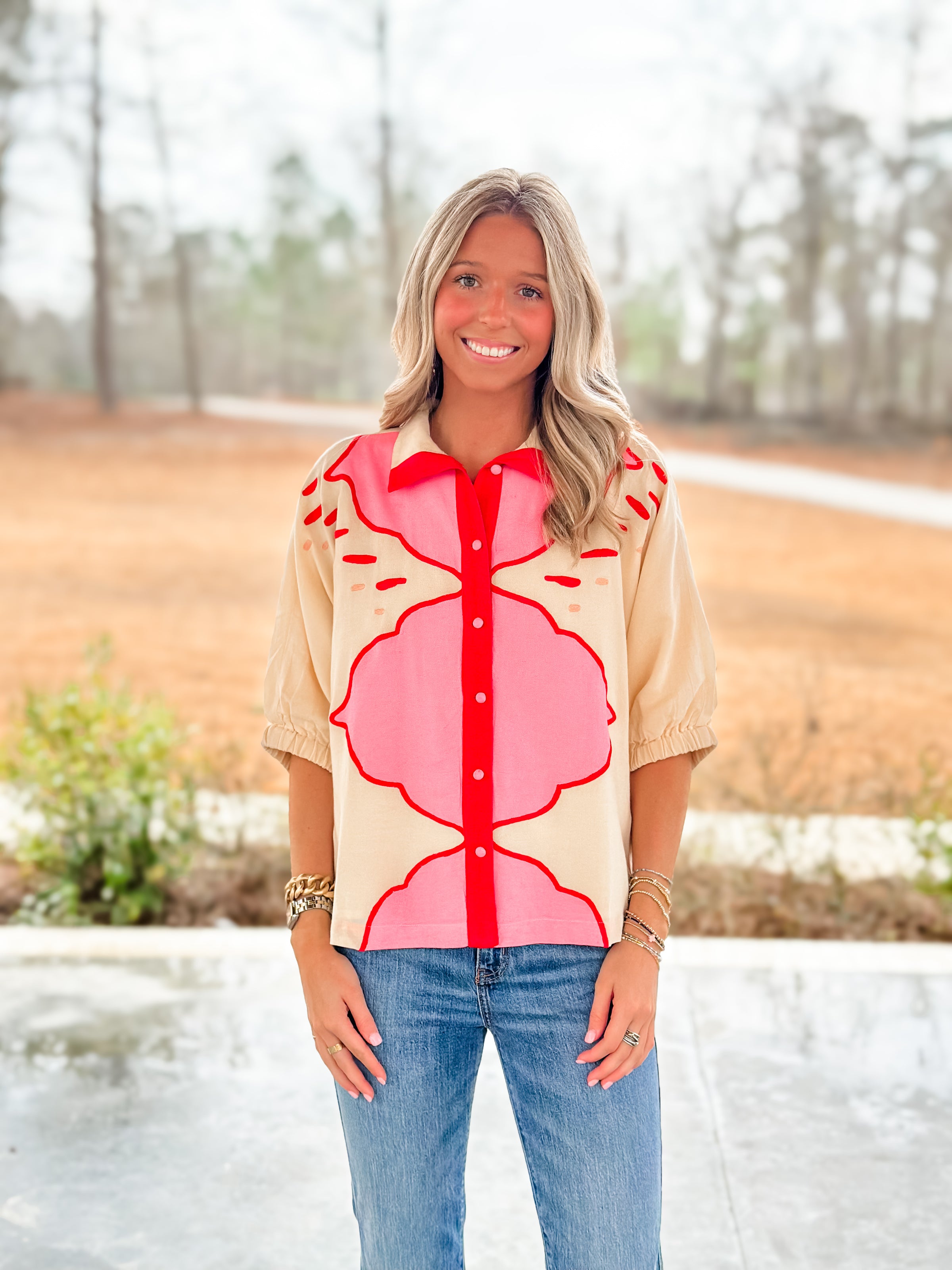 The Bonny Top is your new go-to for effortless elegance. Crafted from breathable linen, this charming piece features a soft pink palette with delicate pink detailing that adds just the right amount of personality. Perfect for warm weather adventures, casual brunches, or lazy afternoons—it's the kind of top that makes you feel put-together without trying too hard.